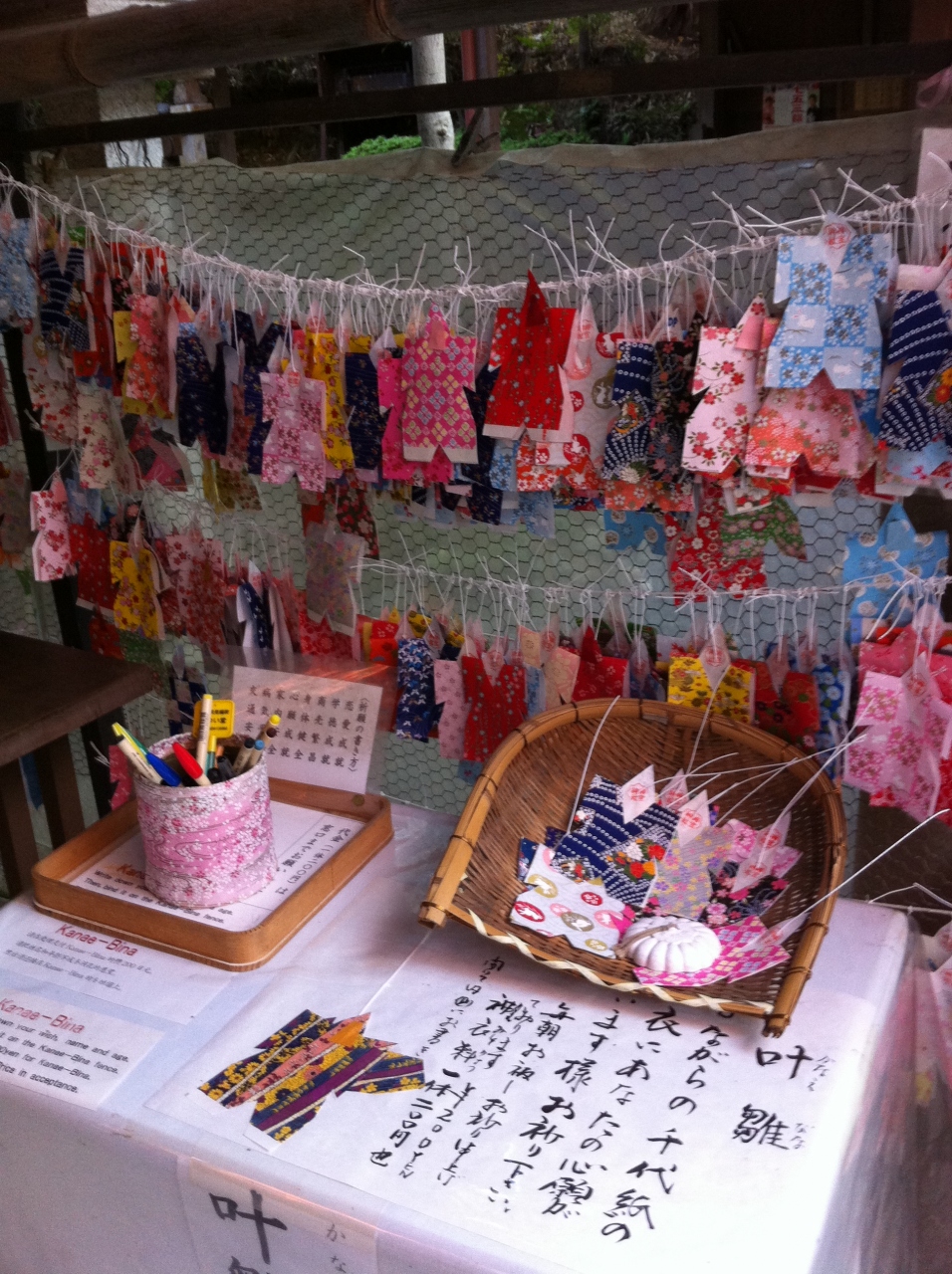 願い事は絵馬ではなく、叶雛というかわいらしい千代紙で出来た人型の札に書くと叶うそうでえす。