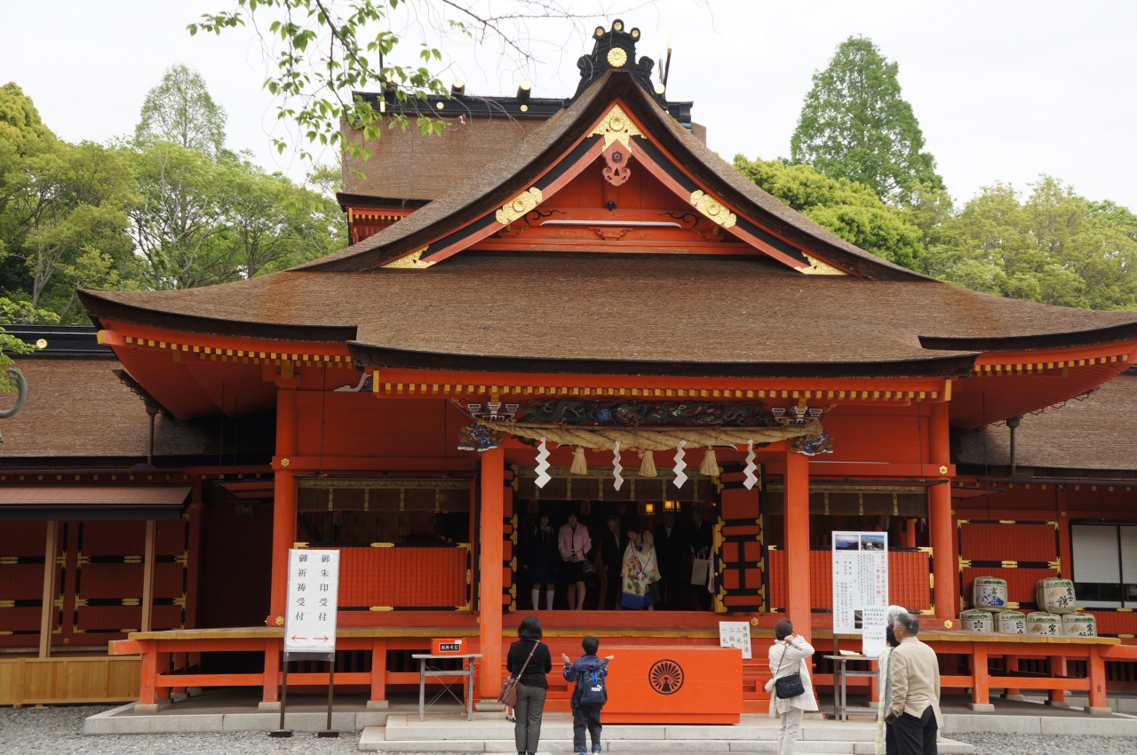 「富士山本宮浅間大社」全国に約1,300社ある浅間神社の総本社であり「富士山-信仰の対象と芸術の源泉」の構成資産の一つとして世界文化遺産に登録されています。主祭神は木花之佐久夜毘売命=浅間大神で富士山を祀っています。なお富士山の8合目以上(山頂)は浅間大社の境内です。
