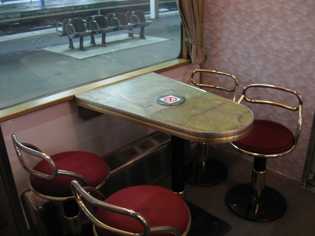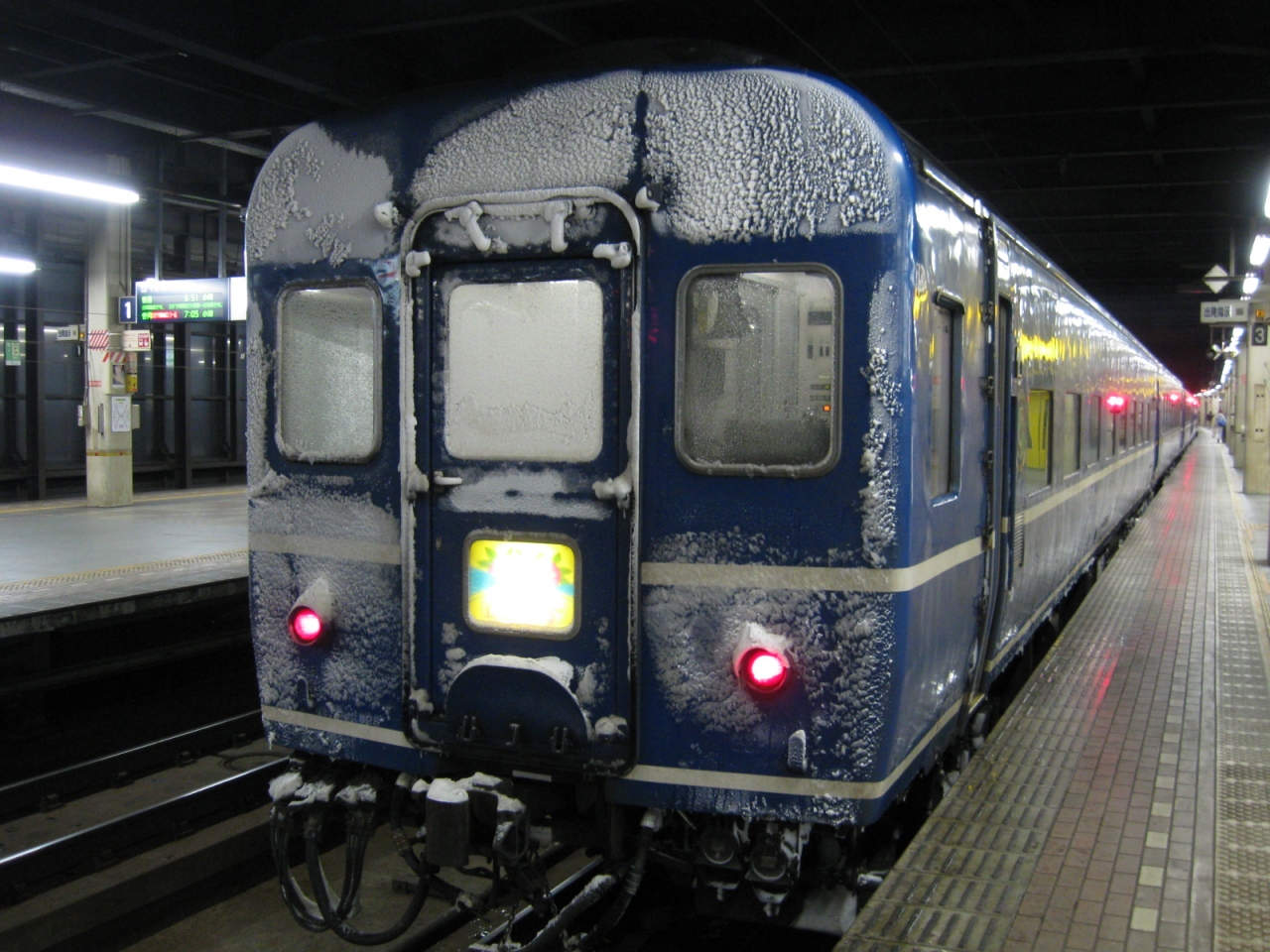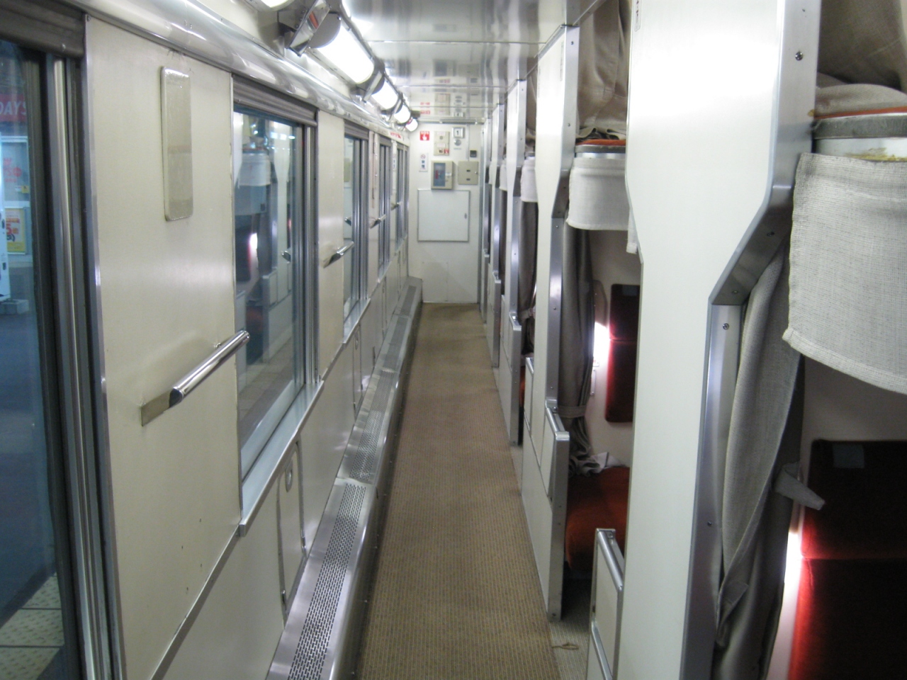 車両は相変わらず古いままです。昭和55年製の銘がうってありました。しかし、指定席車両には4人1テーブル×2のラウンジ(談話室)スペースがついたり、寝台車2両目などには鍵がかけられ、鏡台と椅子のある女性化粧室もあったりします。自由席座席で口を開けて寝ている若い女性もいるので、化粧室の活用や寝台車の利用もおすすめです。