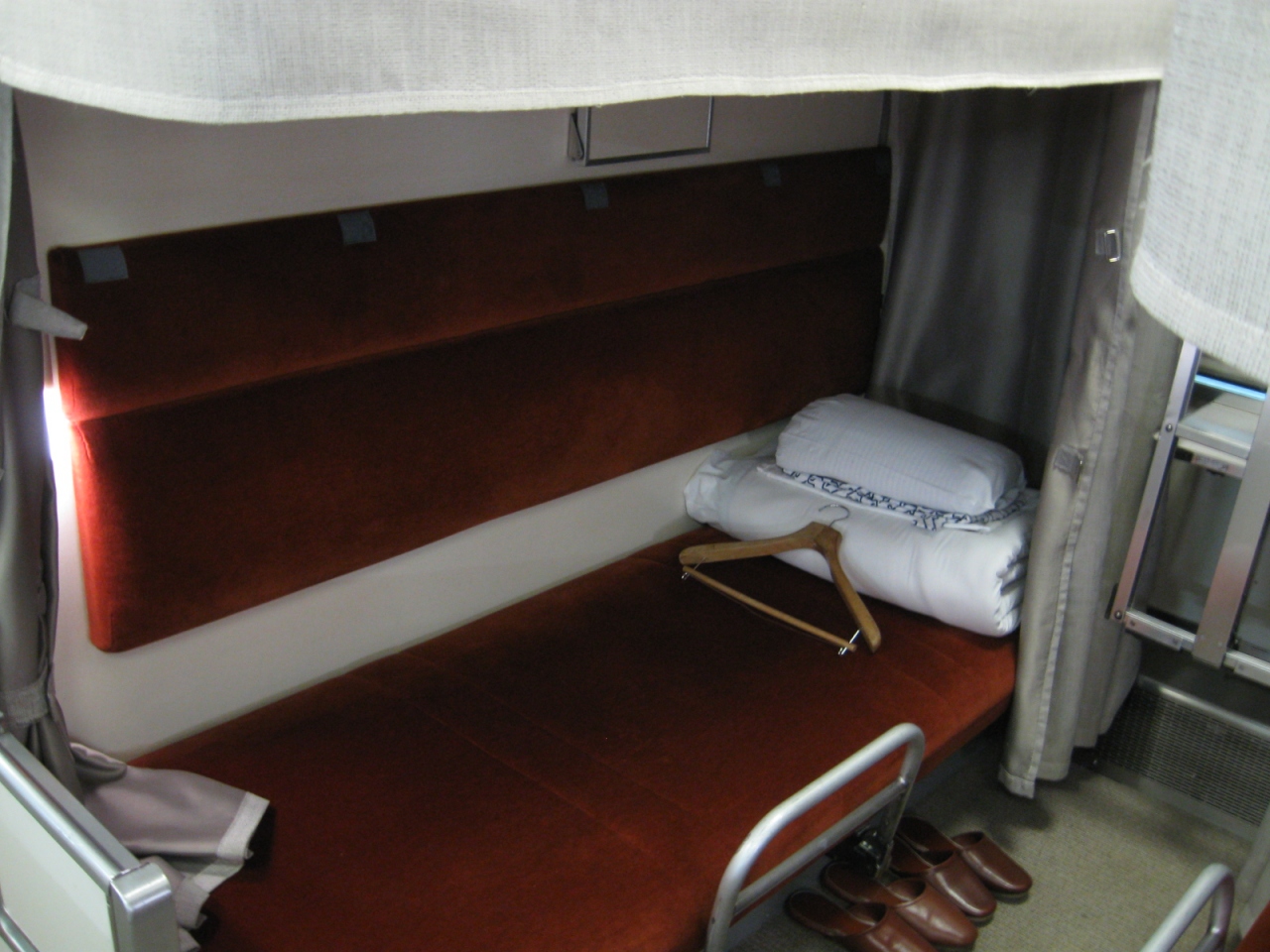 寝台はいずれも4人部屋で上下2人ずつのベッドがあります。1車両につき、1上、1下……16上、16下の番号のふられたベッドがあります。乗るなら真ん中辺りの番号がよいです。端の番号は台車の上で、震動や音がもろに来ます。一般的に下段のベッドの方が揺れが少なく良いと言われていますが、台車の上だったら果たしてどうでしょうか。