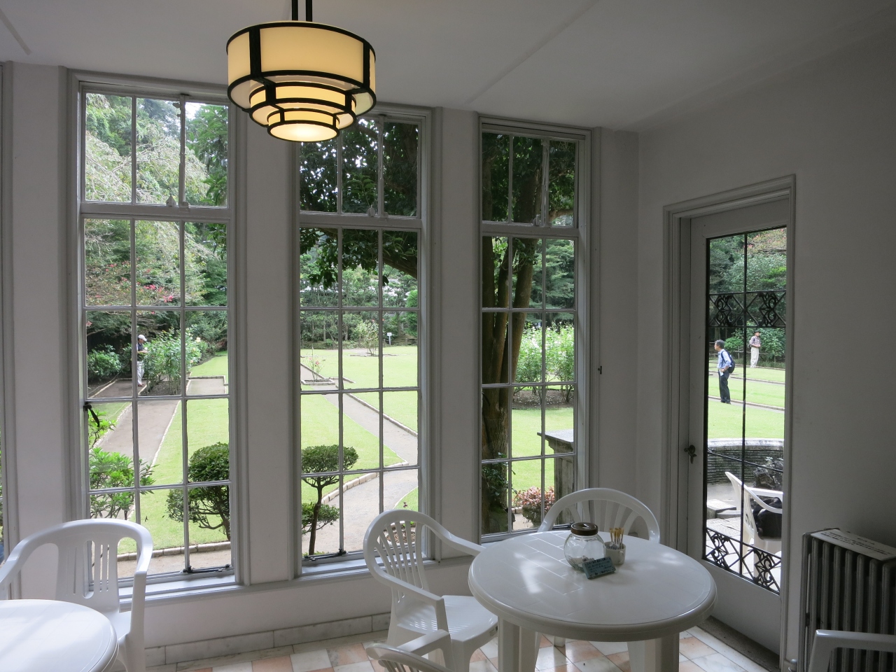 報国寺の横を抜け山側に入って行くと立派な洋館が見えてきます。公開日なので、結構人は多かったです。外観は壁に梁や柱が見えるハーフティンバースタイルで、内部には大理石のマントルピースのある部屋、畳敷きの和室、明るい白塗りの大広間など、とても豪華な建物です。また、庭園はフランス式庭園で庭園から見る旧華頂宮邸が一番です。気付く人は少ないですが、ハート型をした植込みが可愛いです。