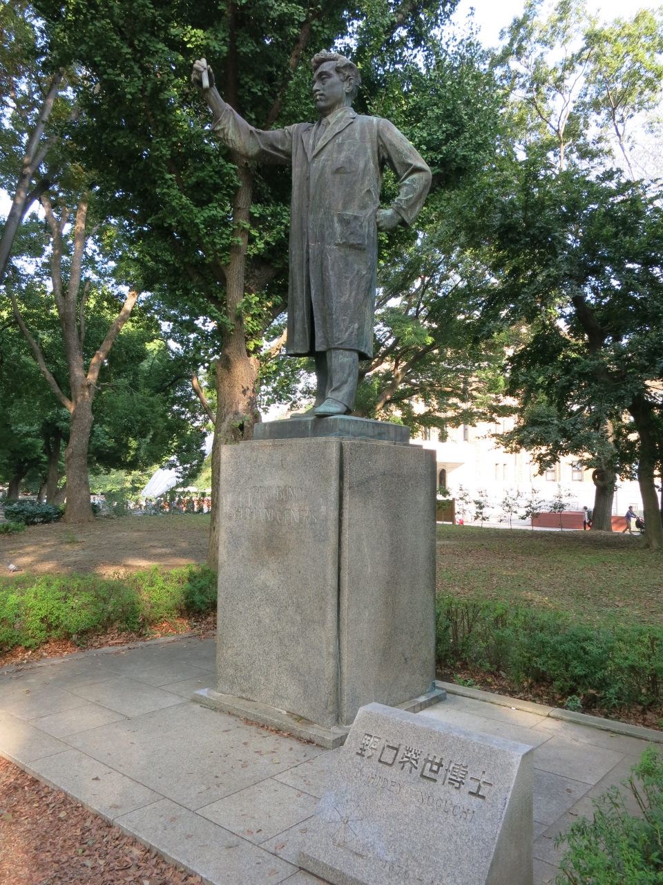 上野公園の噴水池の横にある木立ちの中の歩道を東京国立博物館に歩いていたとき、この野口英世像を見つけました。上野に何かゆかりがあるのかと説明書きを見ましたが、特段関係はなく野口英世の業績を称えて会津会によって建てられた様です。千円札の肖像にも描かれた人物だけに有名ではありますが、わざわざ見に行くほどではありません。