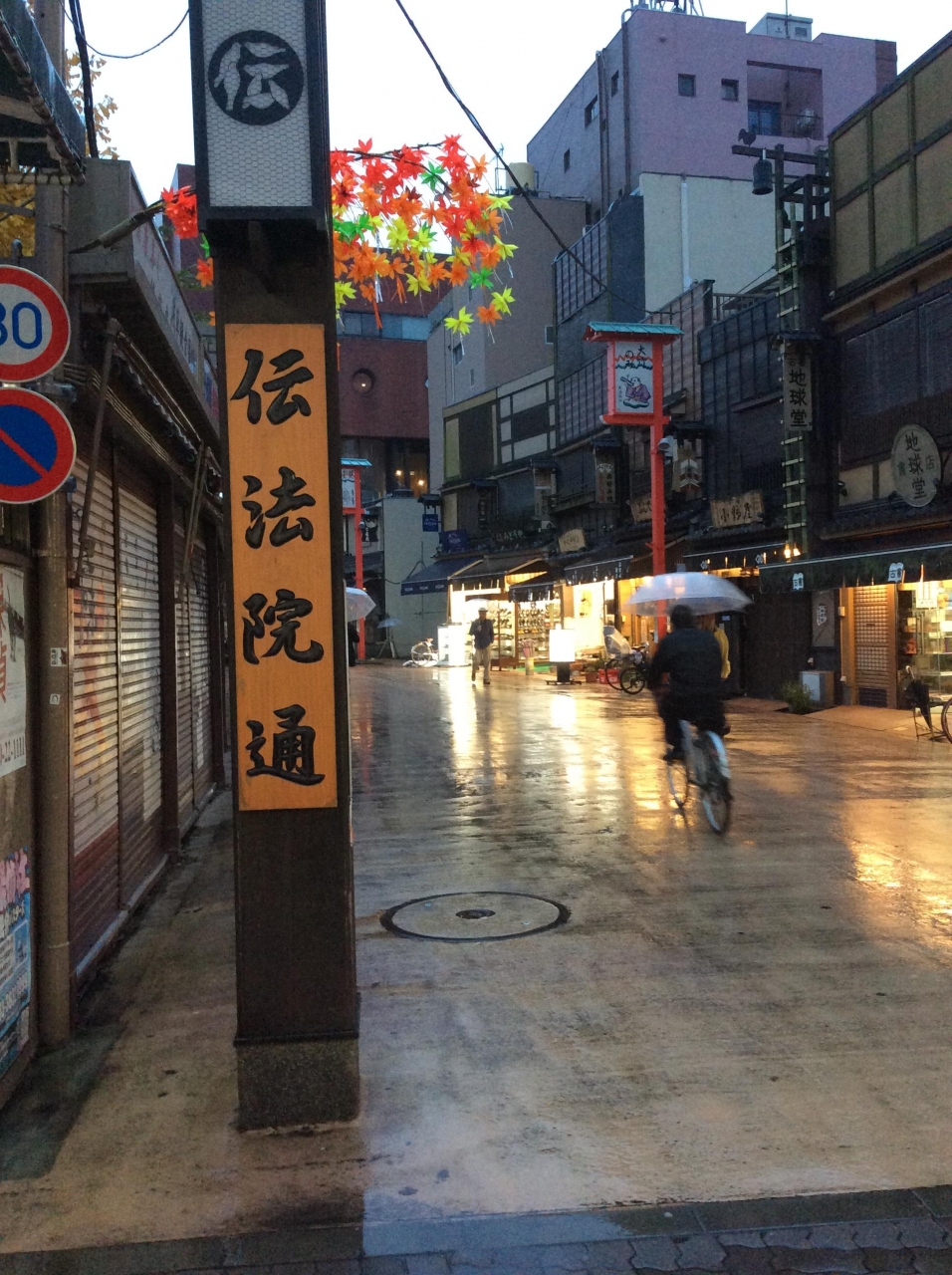 浅草公会堂の北側を通っている200メートルほどの短い通りですが、結構見どころ多いです。呉服屋の屋根にはねずみ小僧、白波五人男などの人形があったり、しまっている店のシャッターにも人が絵がれているし、看板も粋です。人気の浅草メンチを食べながらぜひ散策して下さい。