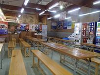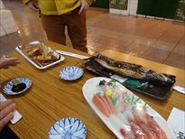 店先で買ったお刺身、イカフライや焼き魚を、おいしい地酒や生ビール等、と一緒に食べる事ができます。