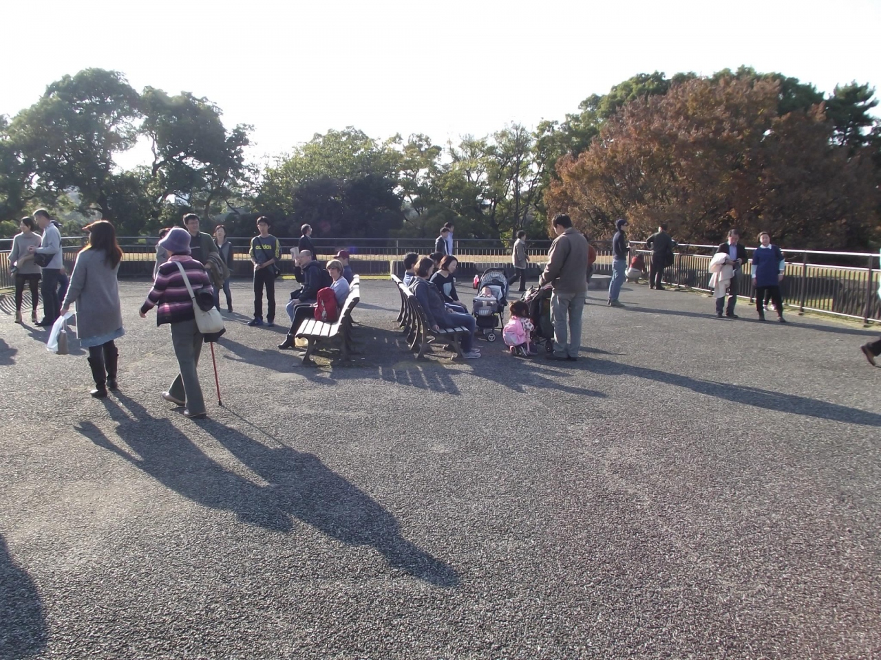 天守台の上には、ベンチがあるので一休み出来ます。 (混んでいますが・・・・)