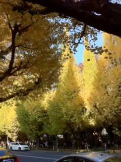 今の季節ですと、なんといってもいちょう並木でしょう。