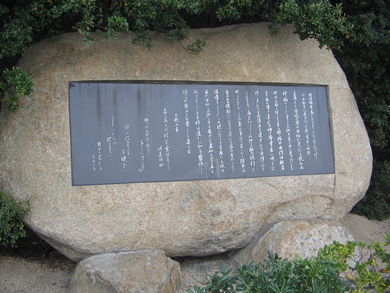 沙弥島からは瀬戸大橋が目の前にあり大橋観光にも最高のビュースポットでしょう。沙弥島にあるカンダ浜周辺には縄文時代から万葉の時代にかけての遺跡などが点在しており特に この地にゆかりのある柿本人麻呂の歌碑はよく知られています。島はそんなに広くはなく遊歩道も整備されているので瀬戸内の景観を楽しむにも最適の場所です。