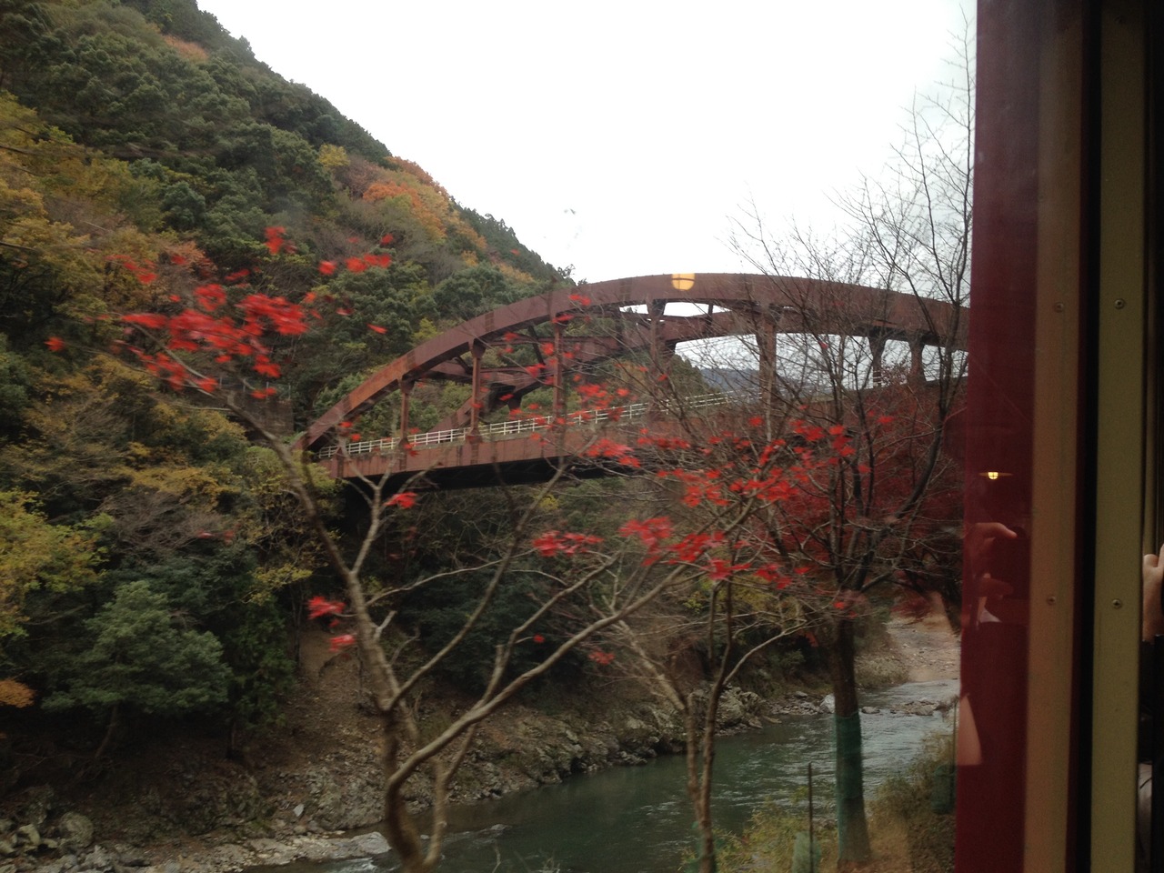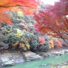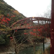 サイコーに良かったです。JR嵯峨野駅の間隣に観光専用に作られた感じの駅舎の内装もステキでしたし、何よりも線路の両脇に数知れず植えられている紅葉の紅葉の素晴らしい事,素晴らしい事、眼下には保津川下りの船も見え、川の緑と紅葉の赤色がえもいえず奇麗でした
