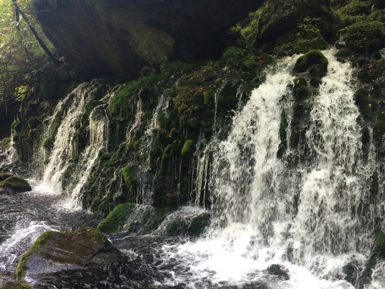 鳥海ブルーラインの入口近くにあります。駐車場から森の中を少し歩きますが10分程度で到着します。もう少し大きいイメージでしたが、割とこじんまりしていましたが、なるほどと納得しました。マイナスイオンたっぷりな感じで森林浴にも良いと思います。