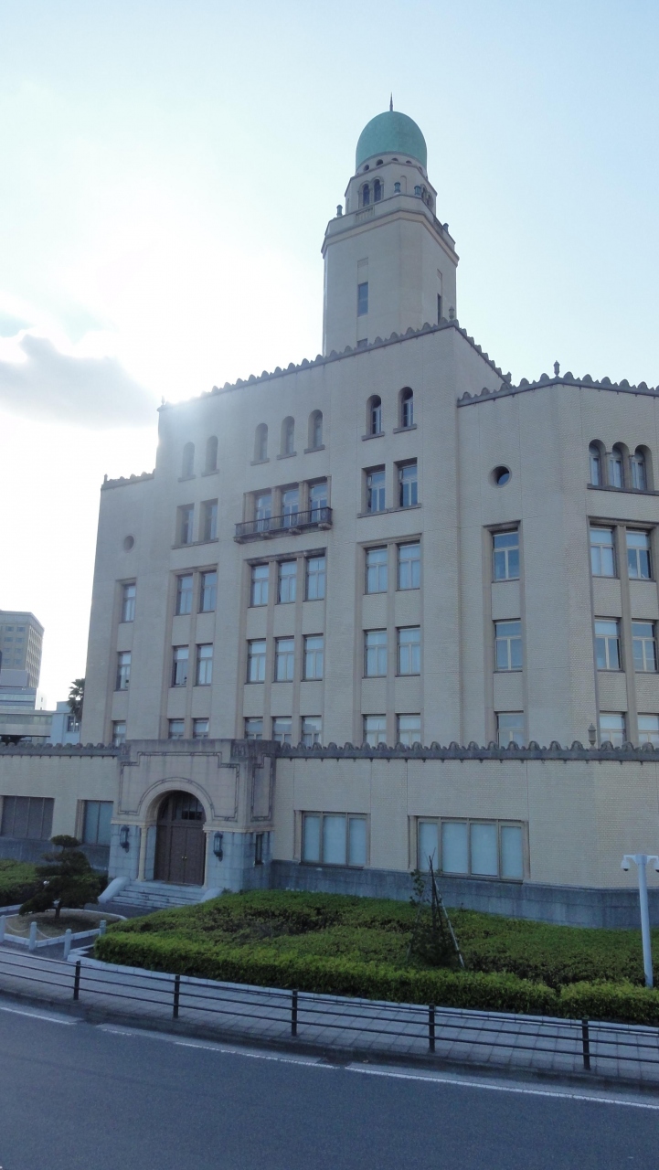 神奈川県庁がキング、横浜市開港記念会館がジャック、そして横浜税関のこのビルがクィーンと呼ばれ、ヨコハマの3塔とされています。イスラム風の緑色の塔です。1階には税関の業務や密輸、禁制品のコピー商品などを紹介した資料展示室があります。