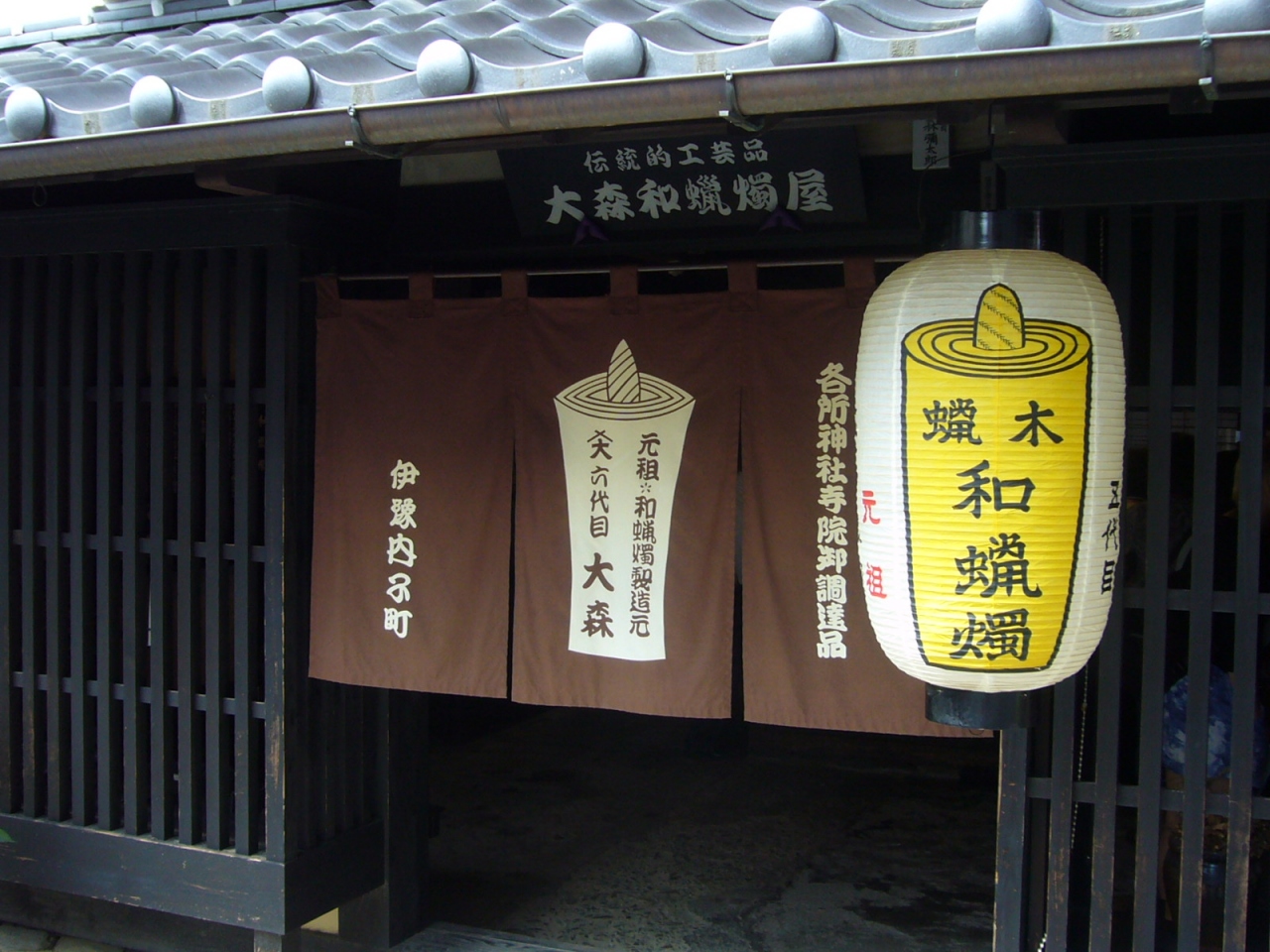 伝統工芸品である和蝋燭が有名で、街のところどころで売られています。また、店の人が実際に制作している現場も見学できます。目にもとまらぬ速さで何本もの蝋燭を手の上で転がして、均一に蝋を付けていく職人技が印象的でした。