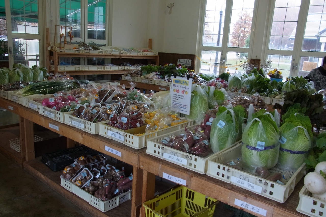 マキノピックランドは、メタセコイア並木道に隣接してます。その中の一角には、近所の農家の方が育てた野菜の直売所があります。私たちが行った土曜日だけの開催かはわかりません。原木栽培の椎茸やえのき茸、しめじなど、スーパーで買うのとは比べものにならないくらい新鮮で大きくて味もしっかりしている野菜を買えます。