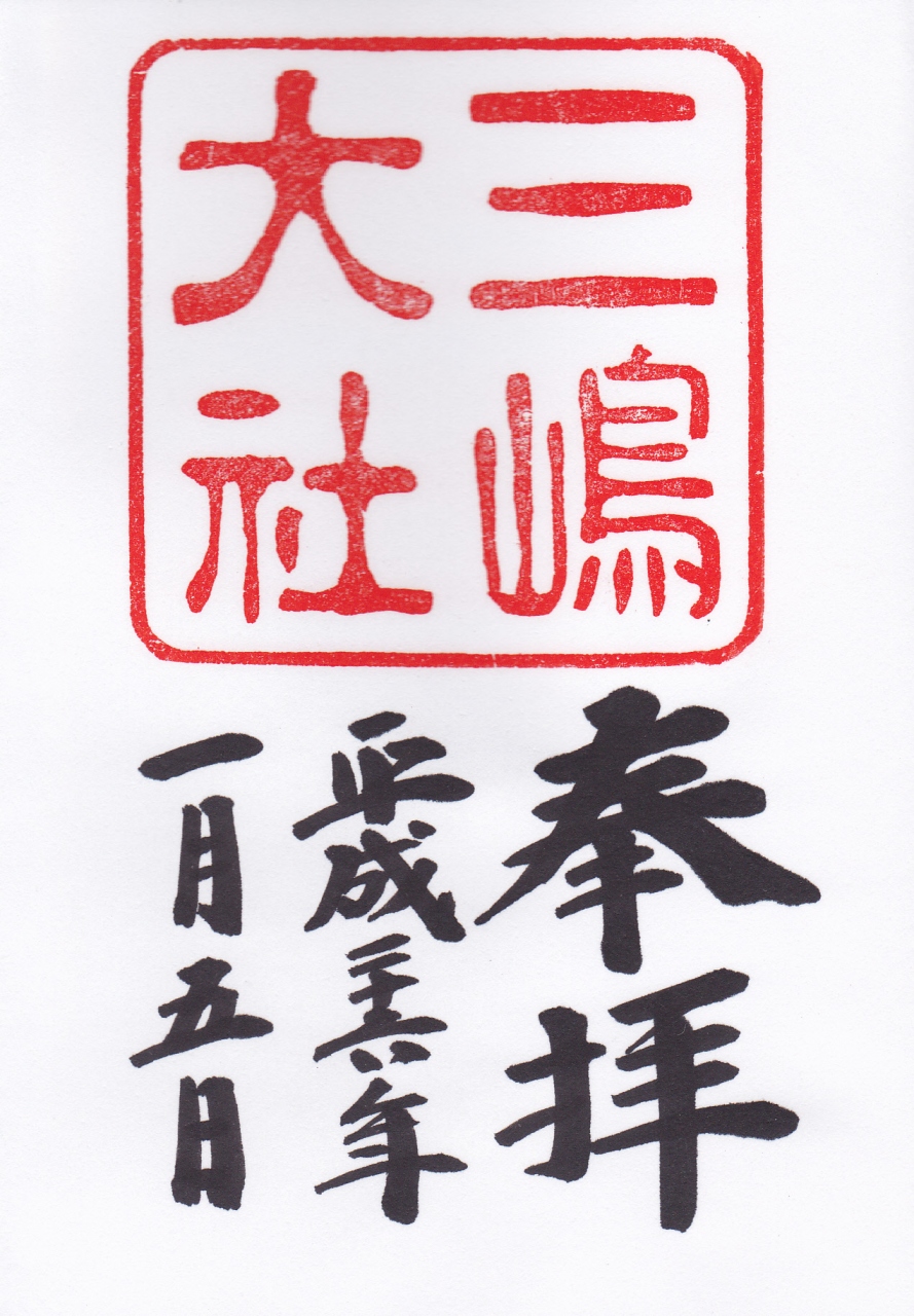 伊豆国の一宮「三嶋大社」です。自宅も隣の市なのですが、以前三嶋大社近くで勤務しており崇敬会の会員にもなっています。初詣、春の桜や夏祭などにぎやかです。