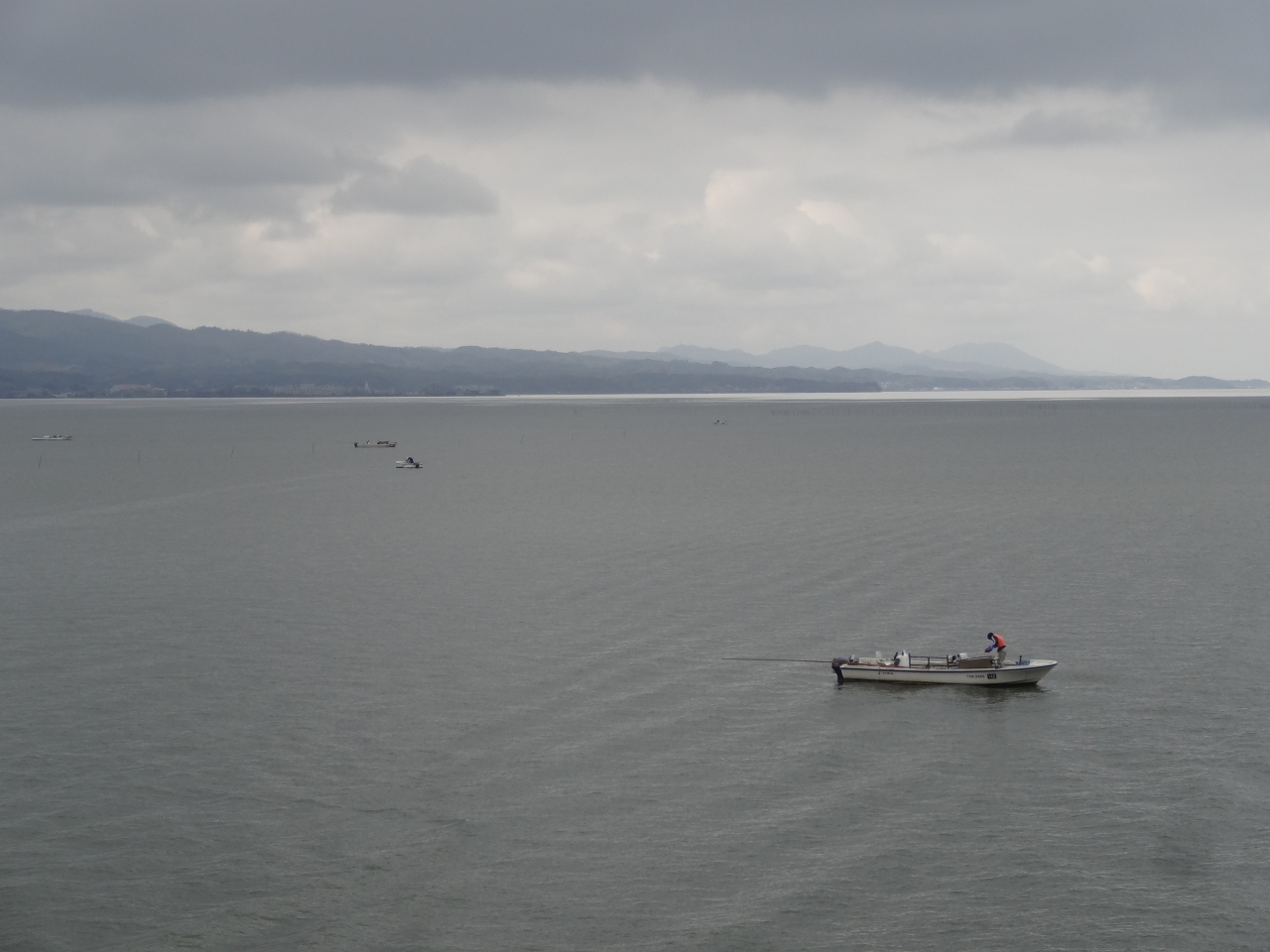 松江の夕陽スポットとして有名な宍道湖。この日は午前中に訪問したので、夕陽は見られませんでしたが、釣りをする人々も多く、全体的にのどかな雰囲気でした。JR松江駅から徒歩で行きましたが、10分程度歩きました。一畑電車北松江線の松江しんじ湖温泉駅行きのバスに乗ればすぐのアクセスです。