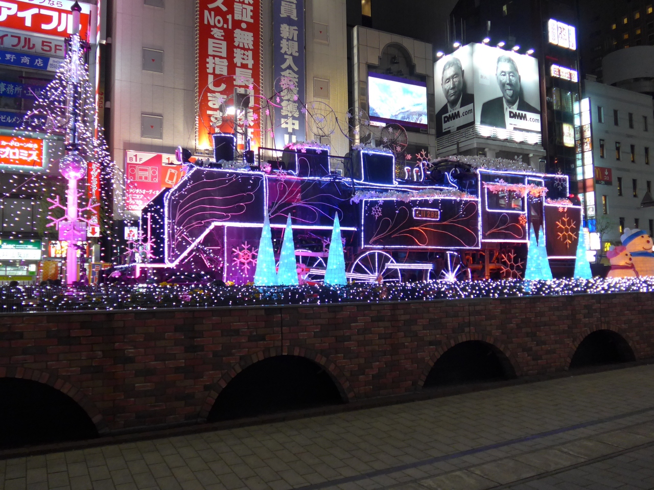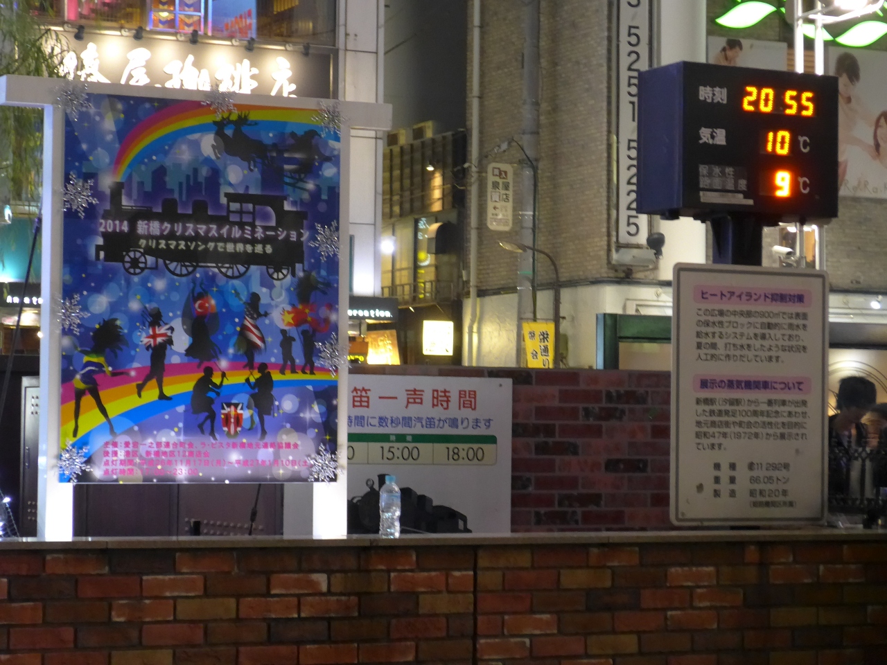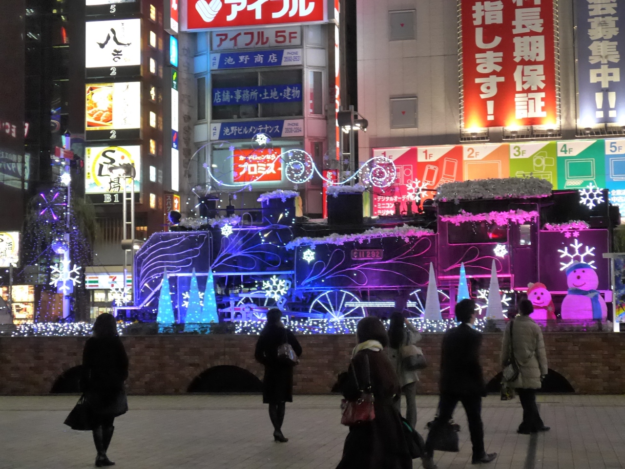 新橋駅周辺はSL広場の蒸気機関車はたくさんのLEDランプで演出され