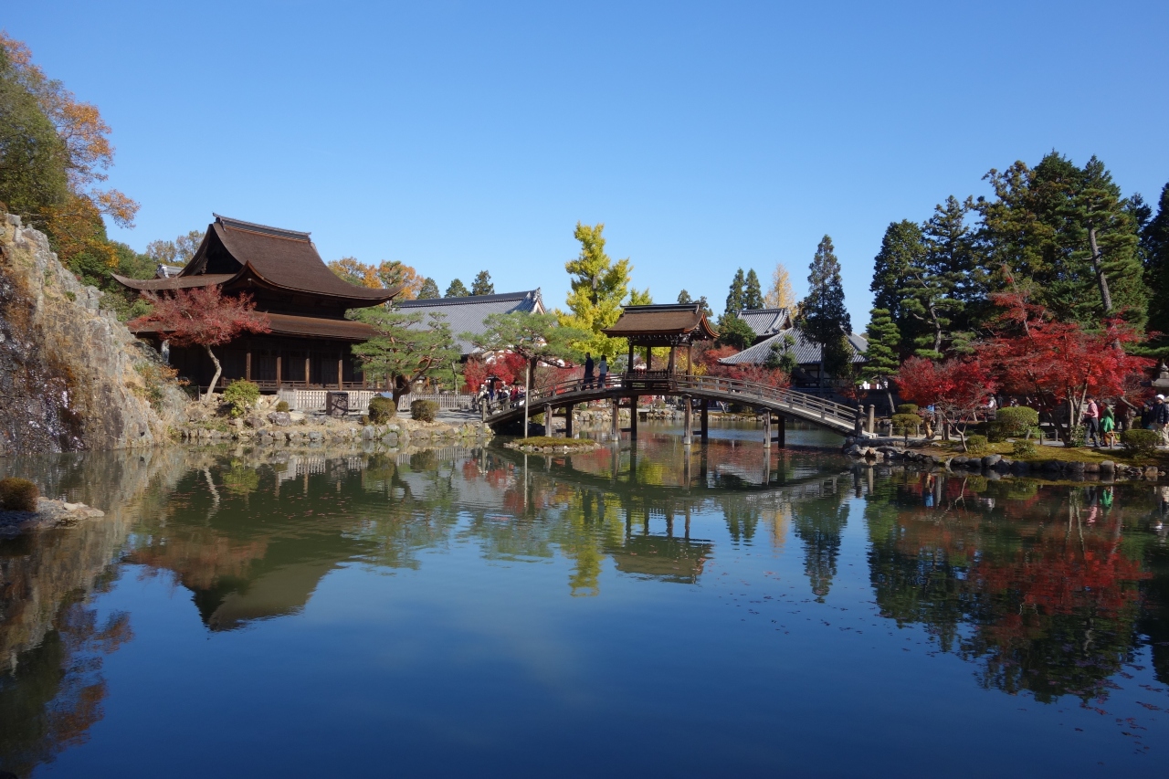 寺内は紅葉で彩られており、本堂前の大イチョウも黄色く色づきます。