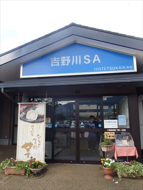 吉野川サービスエリア (よしのがわさーびすえりあ)は、徳島県三好郡東みよし町足代に有ります。ここには、スタンプが置いて有って、吉野川と周辺をイメージしたデザイン画です。ぜひ、一度、スタンプしてみてください。