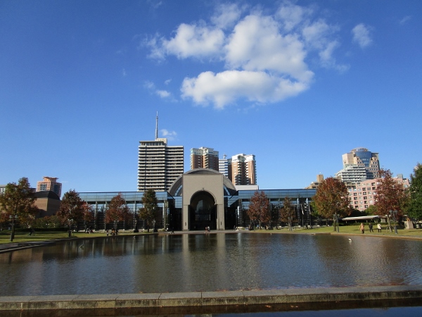 博物館の正面には、広いスペースに池があり、とても美しい風景です。
