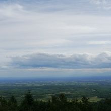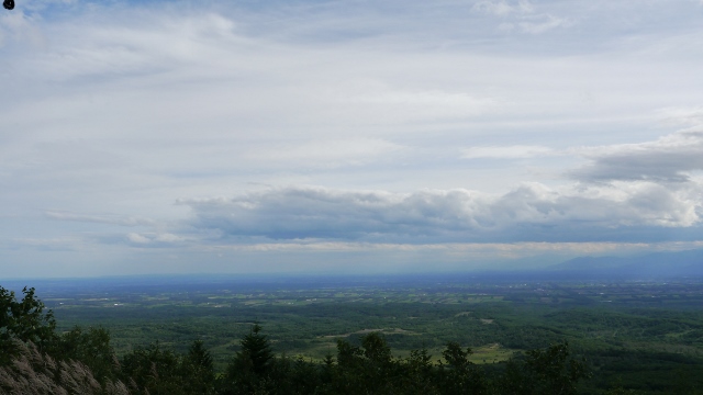 扇ヶ原展望台は鹿追町にある展望台で然別湖に向かう道道85号沿いにある展望台。標高を上がったところにあるので十勝平野の広大な眺望が望める。訪問時はここにくるまでに様々な展望台をまわってきた後だったこと、天気が曇ってしまったことから感動が薄れてしまったが見事な景観であることは間違いない。然別湖に向けて高度が下がり、このような景観は登山でもしないと見られないので休憩を兼ねて立ち寄るのもいいかもしれない。