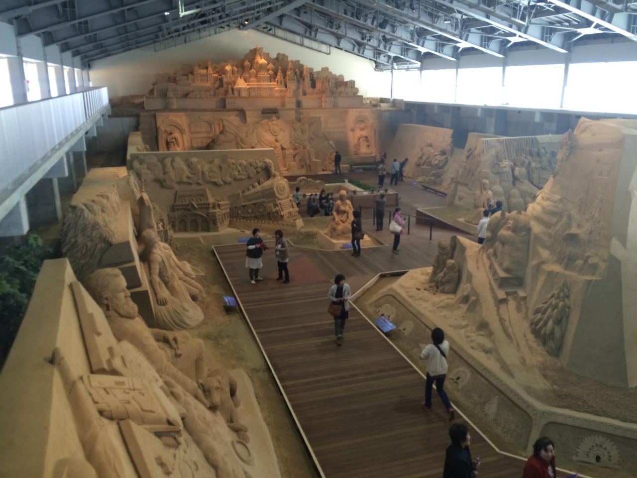 想像が何年も続いていたので、実際に行ってみたら意外と小さい箱におさまっていました。確かに砂の彫刻はすごいと思いましたが、思った程(想像には負ける)では無かったです。しかし、違った観点での美術館は一見の価値ありです。