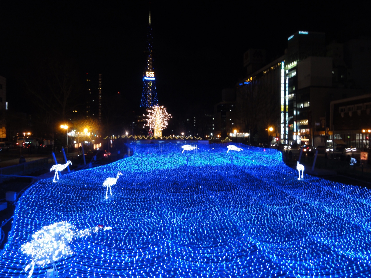 大通公園は昼間は普通の公園ですが、夜のイルミネーションは素晴らしく綺麗でした。同時開催でミュンヘンクリスマスショーも開催されており、そちらの方もお店がたくさん出店し楽しい雰囲気です。テレビ塔から公園を見るととても美しい。ここは、地下鉄などのアクセスもよく、おすすめのイルミネーション会場です。ただ、中国からの観光客が多く、ちょっと、うるさい面はありますが仕方ないですね。