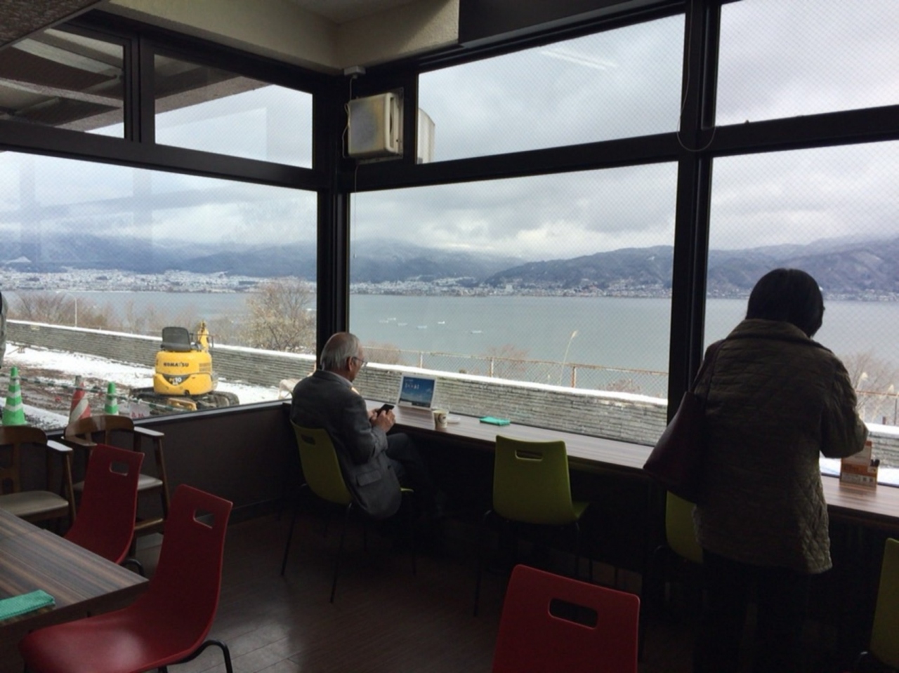 コンパクトなSAですがここの一番のポイントは諏訪湖を見渡せるSAだということです。