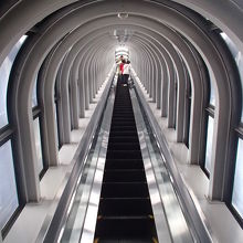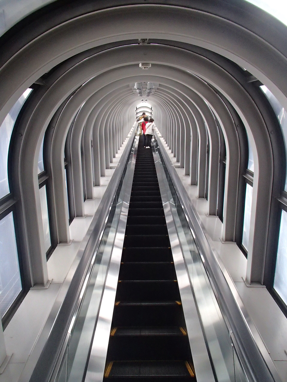 上がる前に、長い長いエスカレータで上がります。とても高い位置に架かっているので、天に向かっている感じのする、そんな場所です。