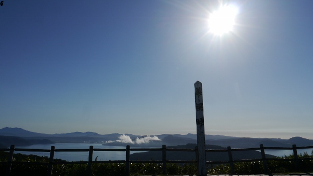 美幌峠頂上にある展望台。道の駅が併設されており津別峠や小清水峠などの屈斜路湖を一望する展望台の中では最も観光客でにぎわっていた。展望台は駐車場から少し坂を上がったところにあり、屈斜路湖の中島を中心に和琴半島まで見られ見事な景観だった。展望台からは360度の景観が望め、屈斜路湖以外の景色もきれいだった。