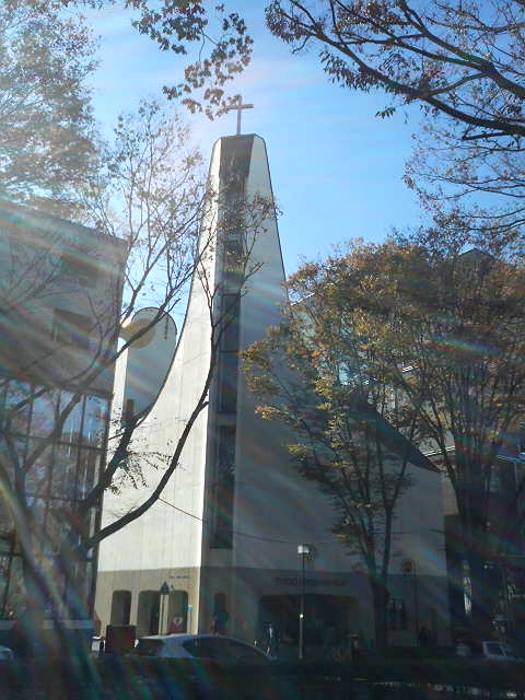 東京メトロ・表参道駅から歩いて5分ほど、表参道ヒルズの向かいに建つ教会です。
