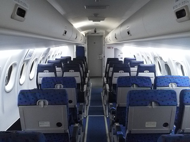 鹿児島空港は足湯などおもしろい施設で有名ですが、キャビンのモックアップもその一つです。ターミナルビルの3階にあるSORA STAGEでは飛行機に関する様々な展示があり、そこは航空機の実際の客室部分を再現した実物大模型施設もあります。実際に日本エアコミューターのCAさんの訓練でも使用されるようですが、訓練をしていないときにはモックアップに入ることができました!