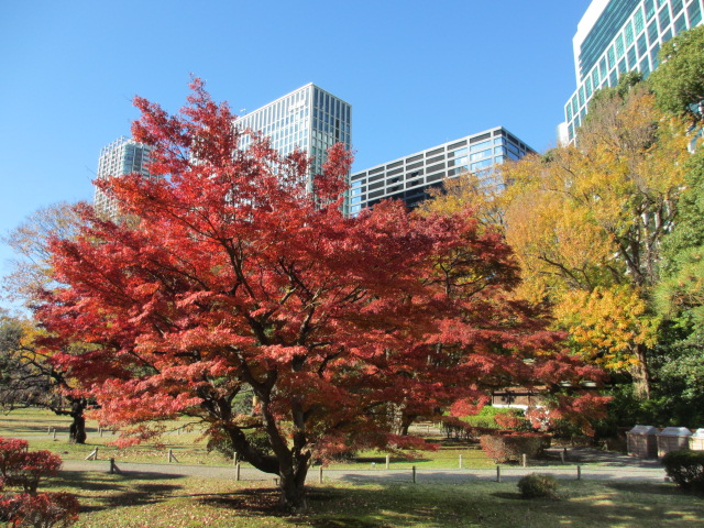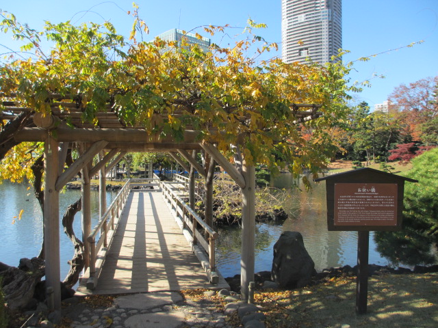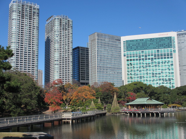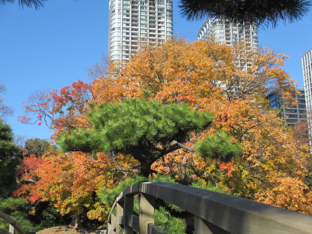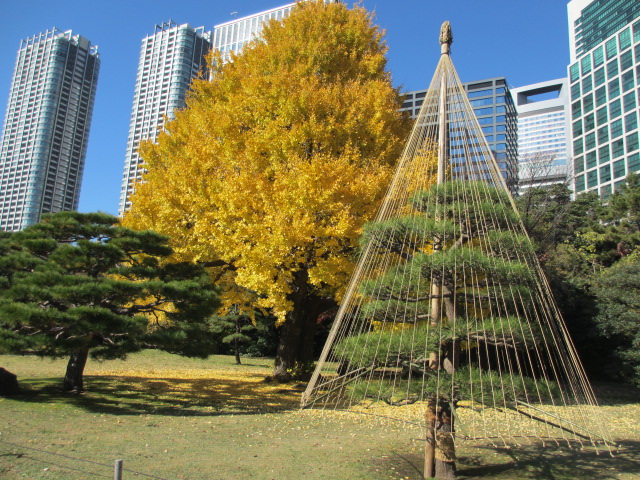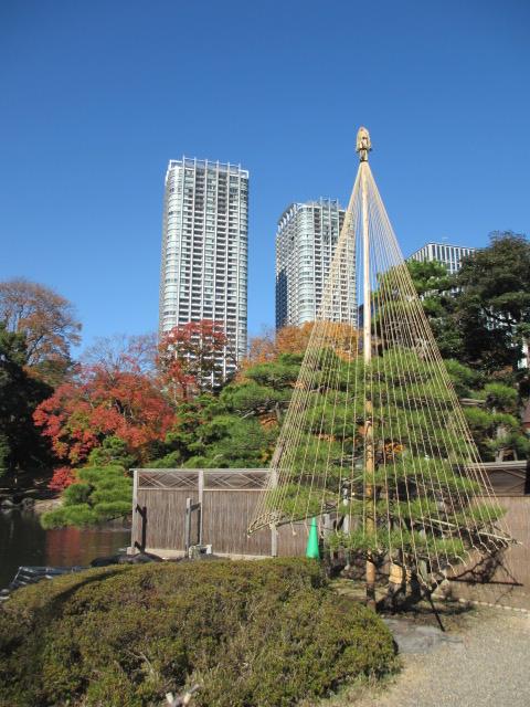 浜離宮恩賜庭園で紅葉を楽しみました。雪吊りもありました。