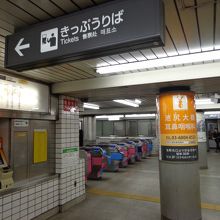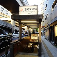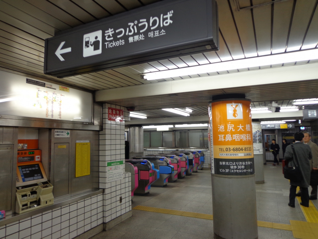 駅の出入口は改札は以下所ですが、東口・西口・南口・北口の4箇所があります。このうち目黒区側の東山商店街に接する東口と、世田谷区側の池尻方面への西口への階段が広く、西口はムトウビルの一階に開口しており、同ビル地下の商業施設とも階段の途中でつながっている。一方、国道246号線の歩道上に開口している南口と北口の階段は狭く、歩道の寸法に余裕が少ないため地上付近で更に狭くなっている。4箇所いずれの出入り口にもエスカレーターはない(エレベーターについては後述)。それぞれの出入口は改札口前のコンコースでつながっており、営業時間内は自由通路としても機能しています。