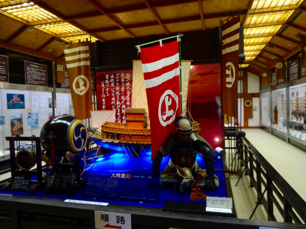 因島水軍城は昭和58年12月1日に築城された、全国でただ一つの水軍城です。南北朝時代から室町・戦国時代にかけてこの地で活躍した村上水軍の歴史・資料を豊富に展示しています。