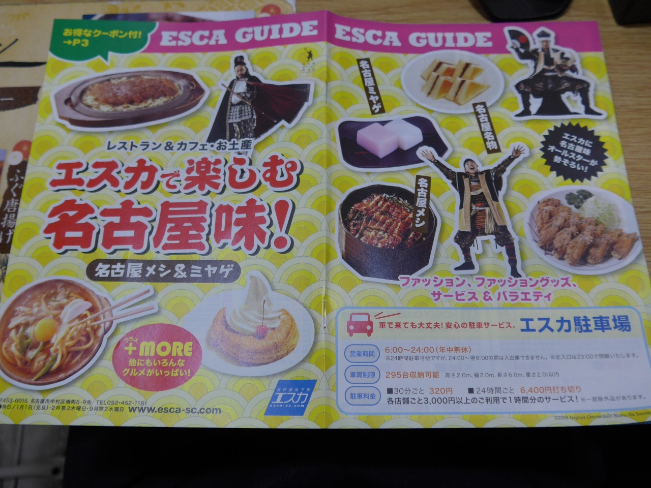 お目当てはグルメ街だったので入り口付近にあるレストラン紹介とエスカガイド「エスカで楽しむ名古屋味!」を見て選んでいきました。