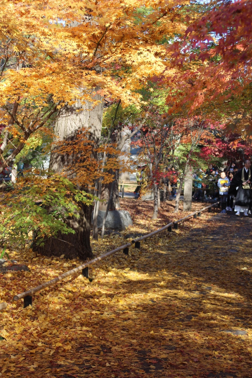 以前新緑が綺麗な時に訪れた際紅葉の頃もよさそうに思われたので再度訪れました。もみじの紅葉は赤、黄色、オレンジ色とバラエティーに富んでいて期待していた以上に綺麗でした。また、イチョウの落葉が黄色の絨毯の様でした。