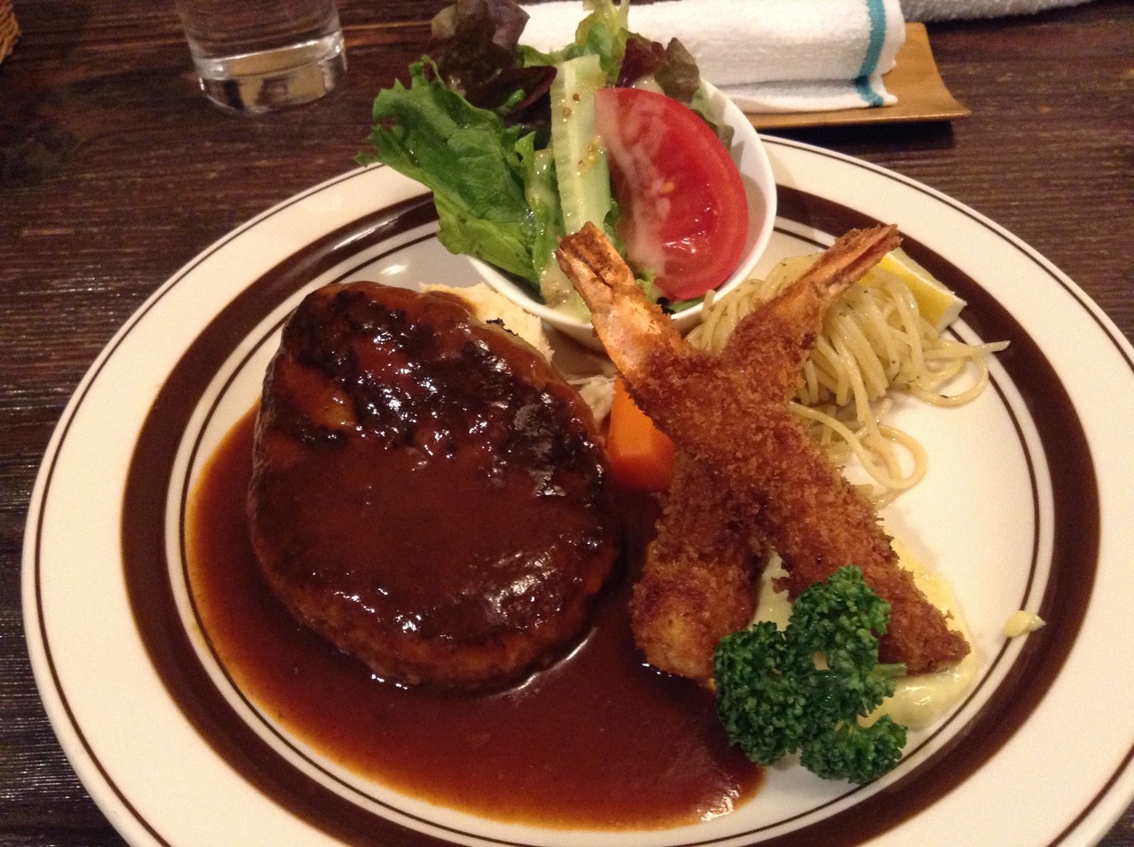 ハンバーグ、ステーキとも柔らかく美味しく頂きましたが、もう少し胡椒を効かせないほうが好みでした。
