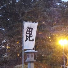 上杉神社のお堀を渡ってすぐの参道脇にあります。近くには天地人の像、上杉鷹山公の像などもあります。