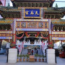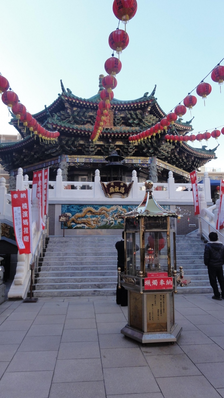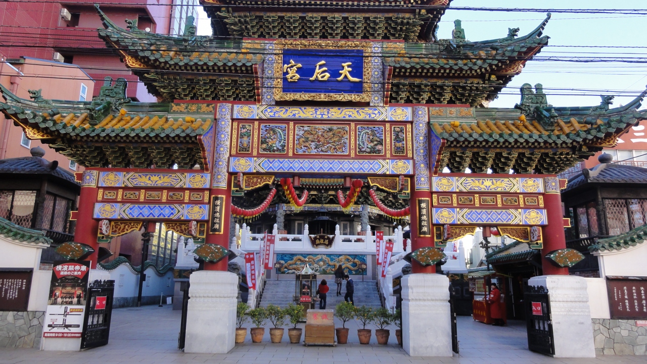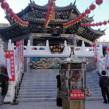 天后とも呼ばれています。香港に行くと、よく見かける神様です。まそのほか、月下老人(縁結びの神様)、臨水夫人(安産の神様)などさまざまな神様が祭られています。いくつかの香呂があり、順番に線香を供えて参拝します。世界各地に住む華僑にとって、まそは心のよりどころです。2005年の工事の際に、関東大震災で生まれたとみられる瓦礫が見つかり、一部は使用されたといいます。