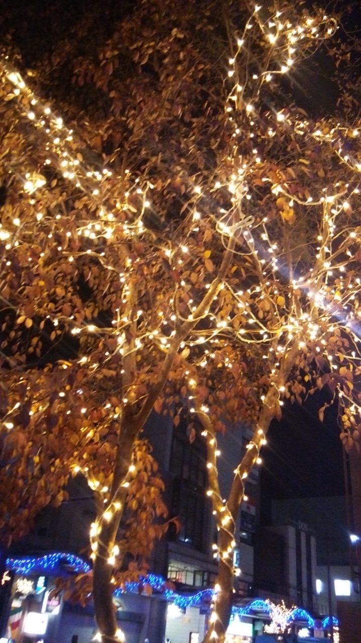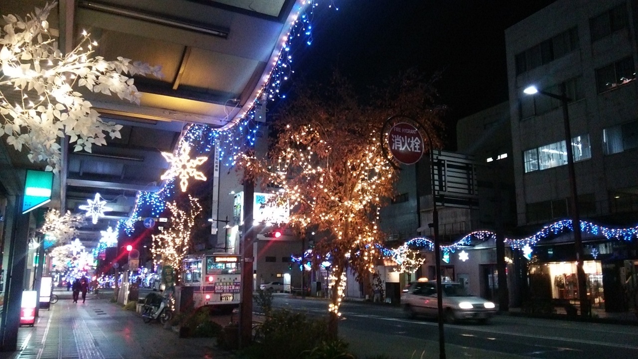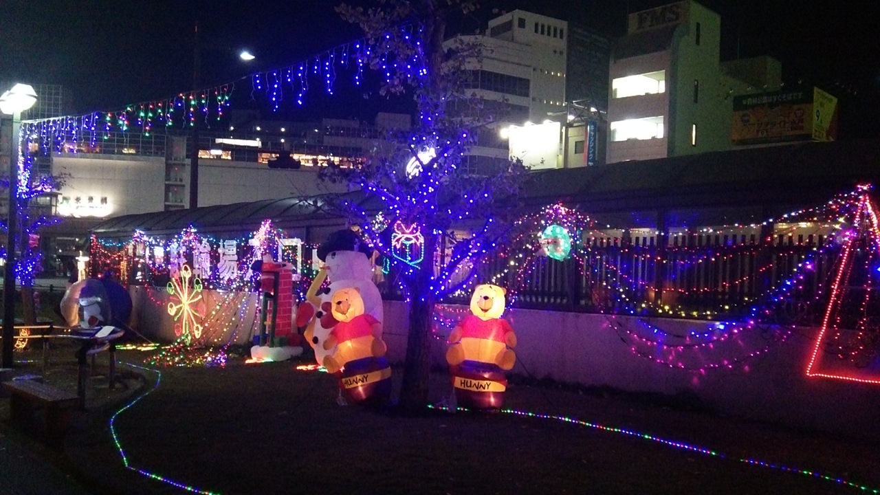 駅前は、かわいい雪だるまなどのイルミネーションと、南町付近は、きらびやかなイルミネーションで、街を飾ってます。