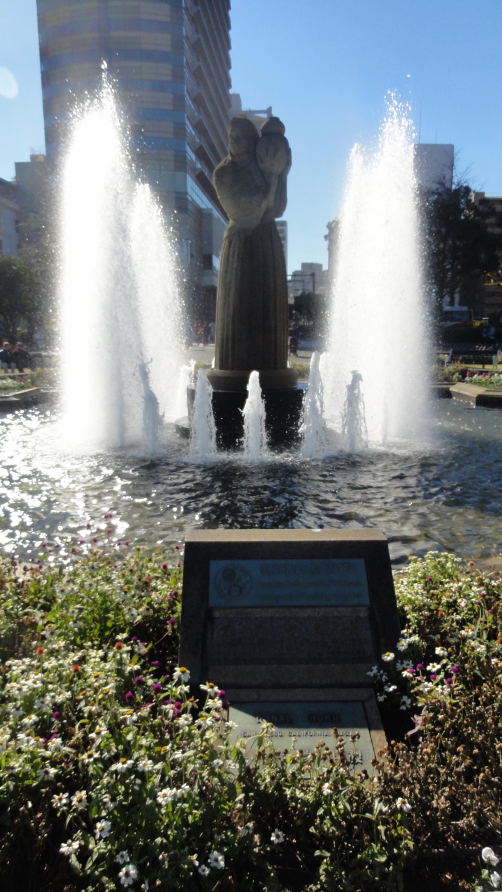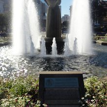 浜・山下公園のほぼ中央にある噴水にある像です。浜市の姉妹都市の米国・サンディエゴ市から1960年に贈られた像です。もう半世紀以上経過しているのですね。噴水の周囲はベンチになっているので、暑い時期には涼むのにぴったりです。