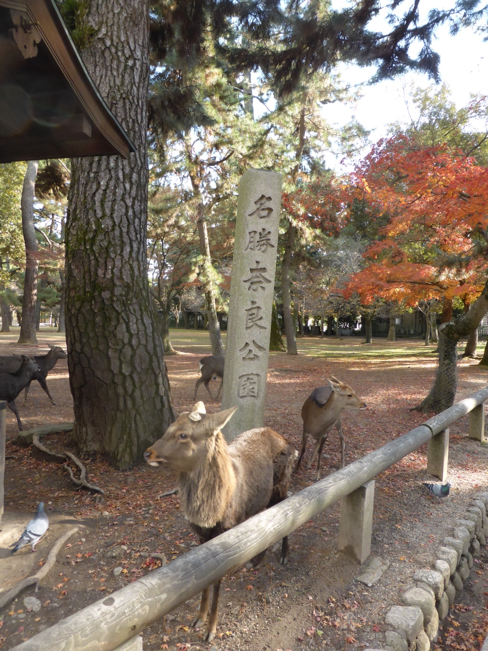 天然記念物の野生の鹿がそこらじゅうにいます。