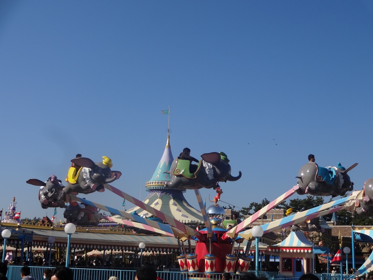 東京ディズニーランドのファンタジーランドにある空中旋回型のアトラクションで、「ダンボ」をモチーフにしています。