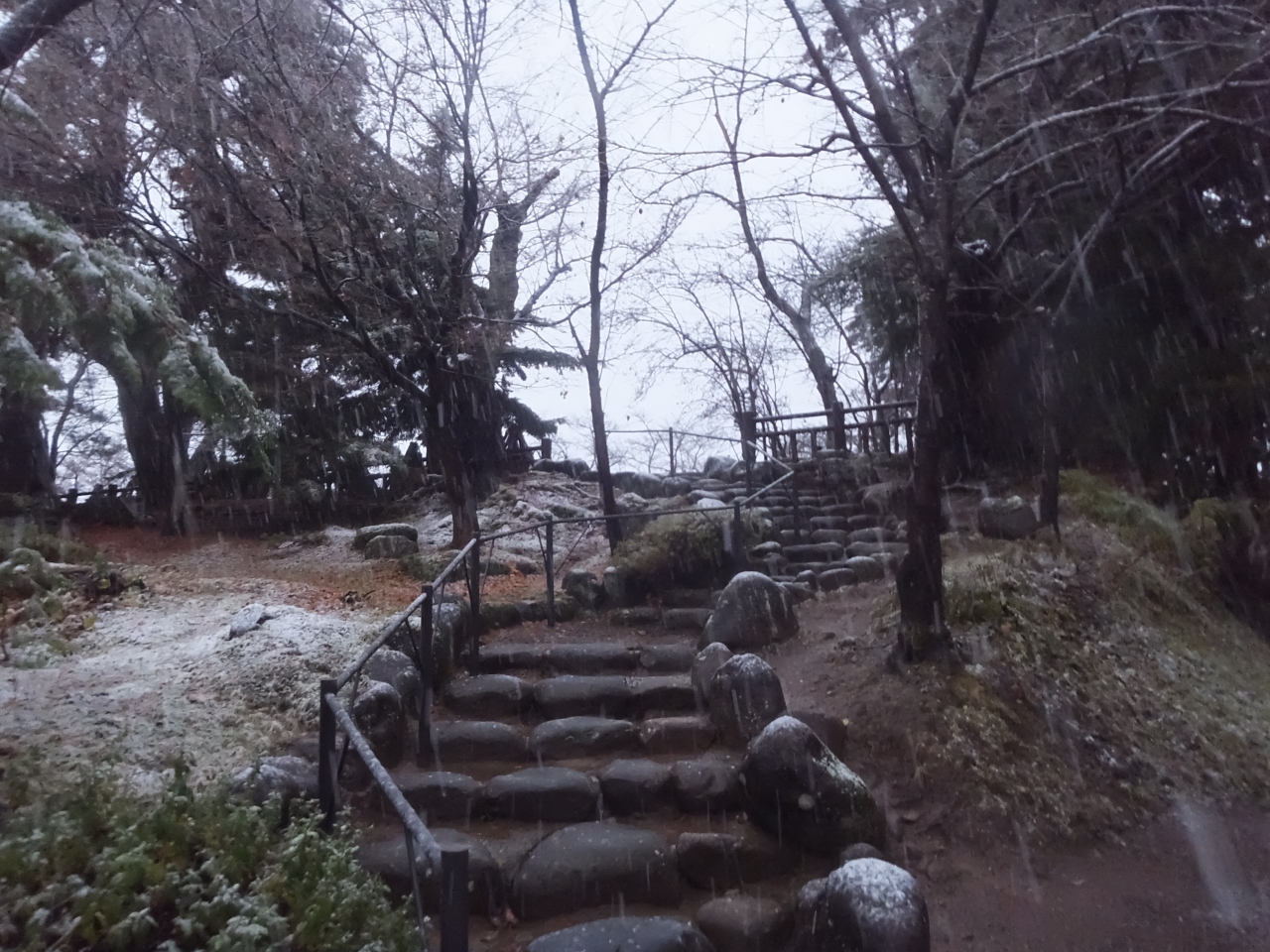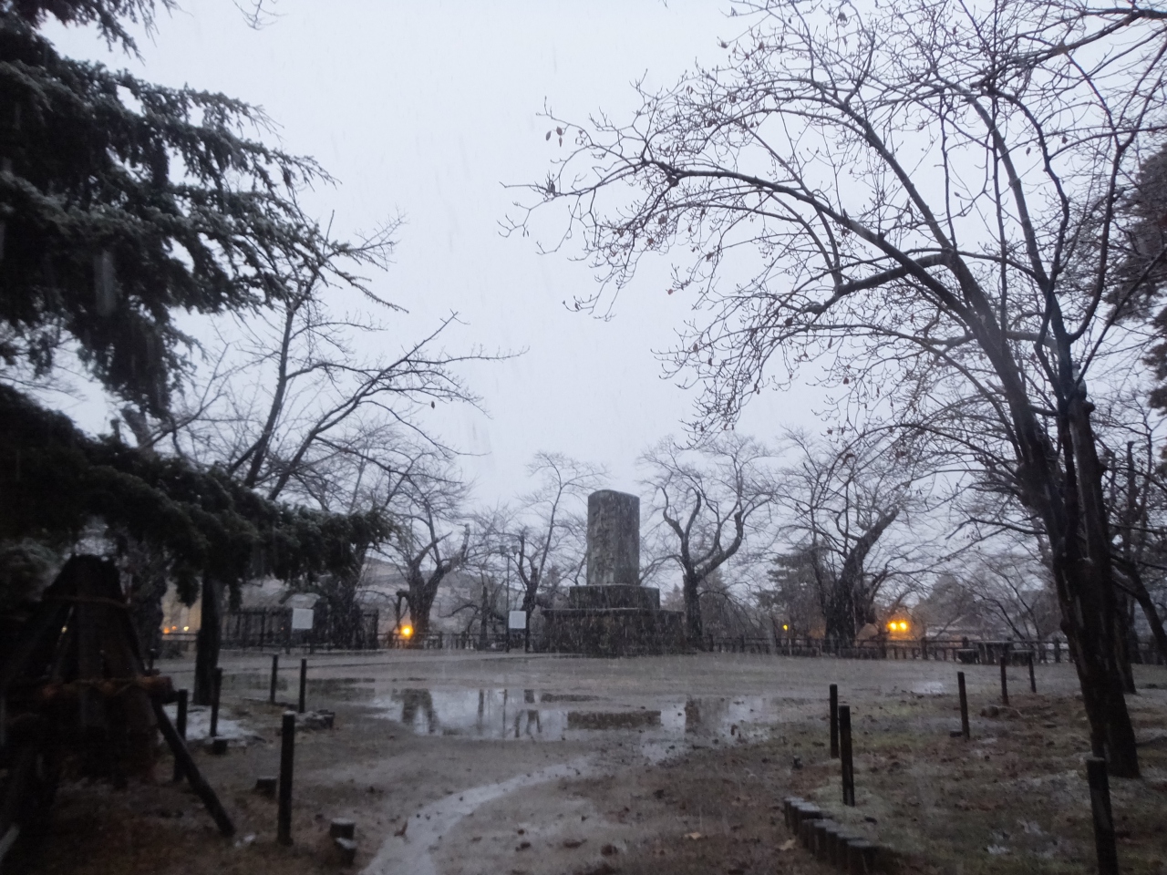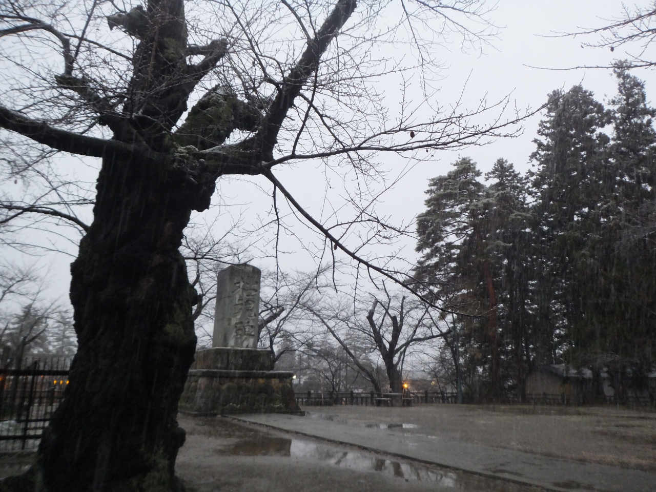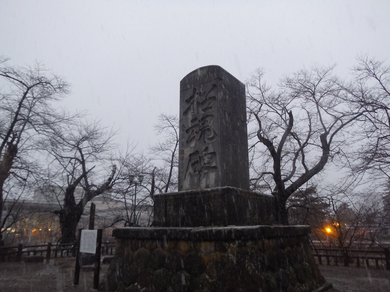 米沢城址を含めて周囲は桜の名所です。謙信公の命日にあたる4月29日には、上杉神社の例大祭および上杉祭りが米沢の街で行われます。なお、冬は2月上・中旬に上杉雪灯篭祭りが、ここ上杉神社、特に鎮魂祭が招魂碑のところで行われるとのことです。招魂碑のある高台へは石段を登っていきます。訪れた時もそうでしたが、石段が滑りやすいので注意が必要です。