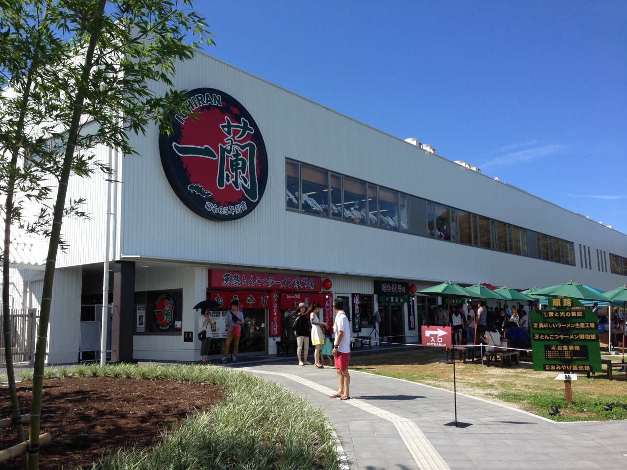 ついこの間テレビでも特集されていた、いまや飛ぶ鳥も落とす勢いのラーメンチェーン店の工場である。オープンしてすぐに行ってみた。ものすごい人だったが、今は混んでいないらしいです。33億円かけて工場を作り、西日本10万食分を毎日作っているというのだからすさまじい。