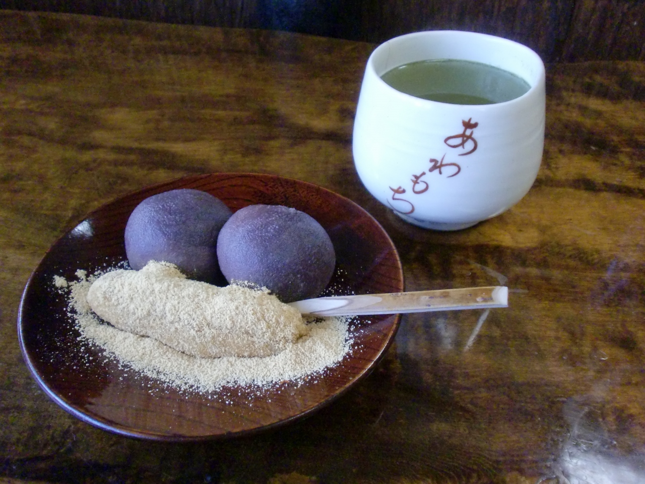 1人だったので、入口横のテーブルを指定されました。3個と5個どちらにしますかと聞かれ、3個をお願いしました。餡2個ときなこが1個で450円です。