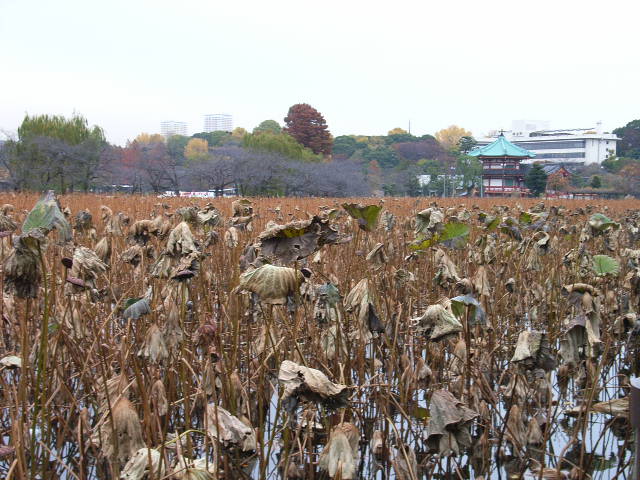上野公園といえば必ず名前の出てくる大きな池です。名前は聞いていいても、実際言ったことが無かったので行ってみました。思っていたより非常に大きかったです。池全面に蓮が生えているのですが、行った時期が悪くほとんどが枯れた状態でした。