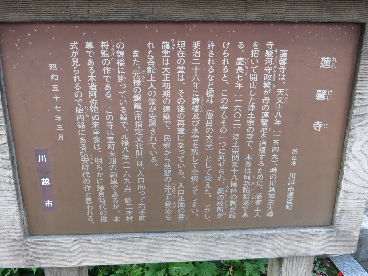 川越の連雀町交差点近くに蓮馨寺があります。川越駅からバスで来られる方は、連馨寺バス停で降りると良いでしょう。川越観光はこの連馨寺を起点に北方面に歩くことになると思います。