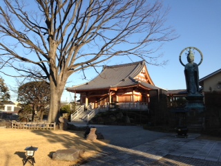 写真は南門から眺めた岩淵大観音と大ケヤキ。