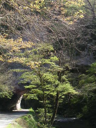 上帝釈観光の最大のハイライトである雄橋は、渓水の浸食作用によってできた天然の橋で、長さ90m、幅19m、高さ40mの日本一だそうです。神の橋とも呼ばれる橋は、世界三大天然橋の一つともいわれ、国の天然記念物に指定されています。自然の力、神秘を痛感しながら、しばし見とれていました。