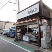 このあたり、某局のTV街歩きの番組ロケがあったそうです(未確認)。向かいには昔ながらの駄菓子屋さん(稲垣商店)があります。ここでお菓子を買って境内で座って食べるのがツウーのようです。